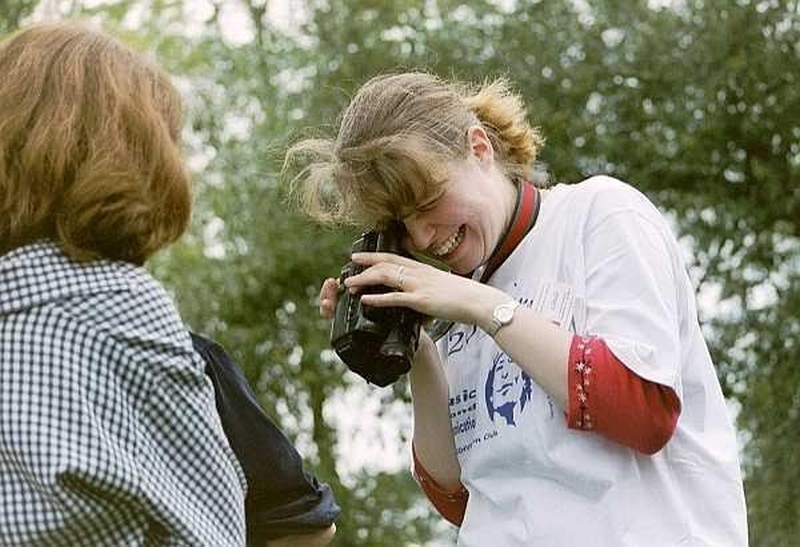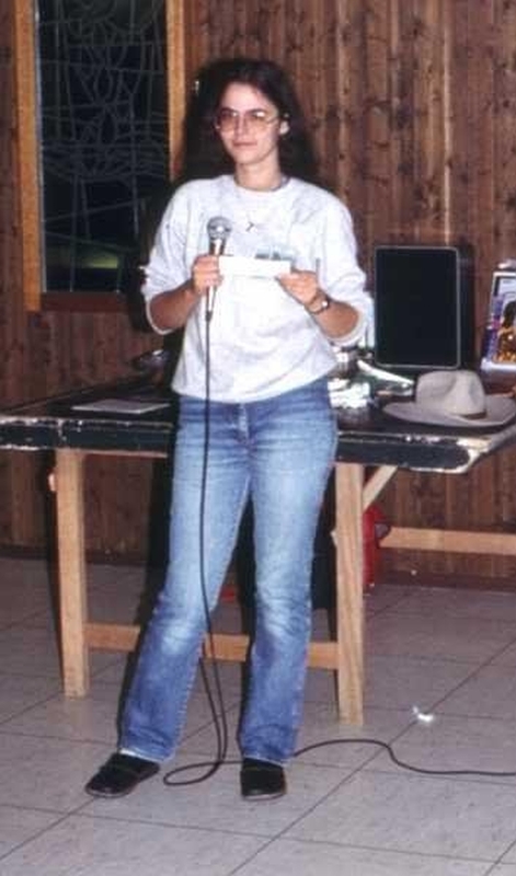 2001 - Schnitzeljagdaufgabe "dreht einen Film zu einem Song" - Linda amüsiert sich ueber das Ergebnis --