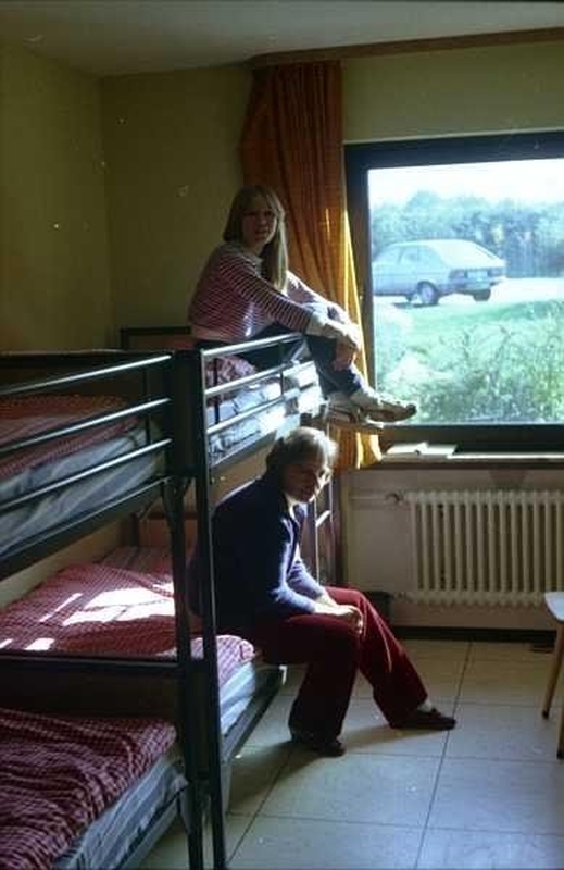 1982 - Rita und Doris testen die Betten im Jugendgästehaus Tholey --Rita and Doris testing the beds at the Jugendgästehaus Tholey
