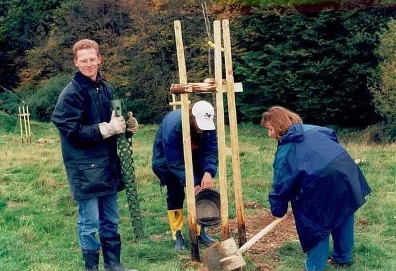 1996 - Jochen, Birgit und Melanie pflanzen einen der 50 Baume zur Feier des 15jährigen Bestehens --