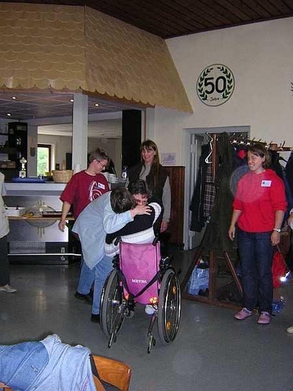 2004 - Das 10te Weekend in Sinzig - Inge bedankt sich bei Gabi J. fuer das Geschenk zum Jubilaeum
